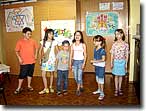 А началось все с того, что нам захотелось устроить что-нибудь новенькое, интересненькое. Мадрихи поделили детей на команды – получилось 4 группы. Готовились к КВНу дружно. Ребята побывали в библиотеке, взяли книги, которые нужны были их командам. Можно сказать, что игра получилась ни только интересной и смешной, но еще и познавательной. Дети ставили забавные, детские сценки, придумывали речевки и девизы. Очень долго работали над первым конкурсом "Приветствие", но в конечном итоге все получилось просто на все пять с плюсом.