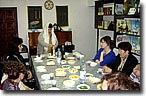 We organized a game Erudite "How well do you know traditions of Passover Seder?" All guests answered questions. Finally it was time to light Passover candles and all guests tried to fulfill the commandment. Then Nakhman and Eli started the traditional part. Everybody recited Pesach Agada, sang songs, ate matsa, and drank kosher grape juice. Tables were laid according to the holiday traditions.