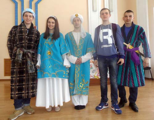 Начался Пурим с поздравительных слов директора Хеседа Макаровской С. А., рассказом о празднике и чтения Мегилат Эстер. А потом начался показ четырех Пуримшпилей, ставших изюминкой праздника.